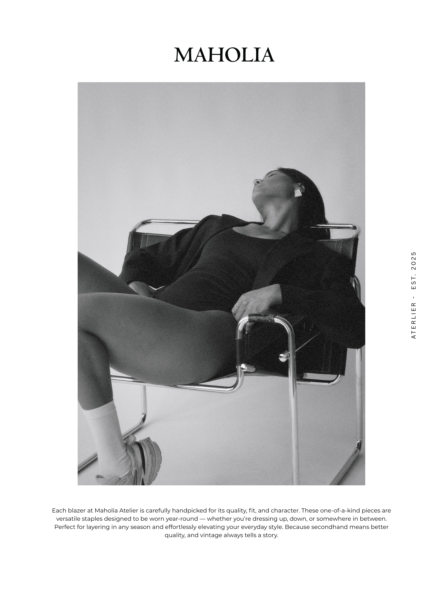 At Maholia, we curate vintage blazers with a minimalist eye, structured silhouettes, and timeless details. We make effortless dressing possible with pieces that are made to last — season after season.