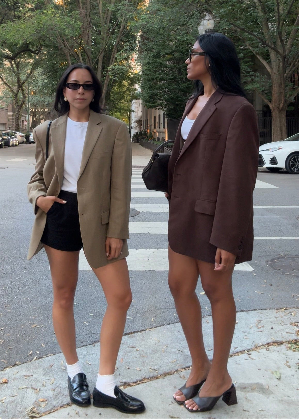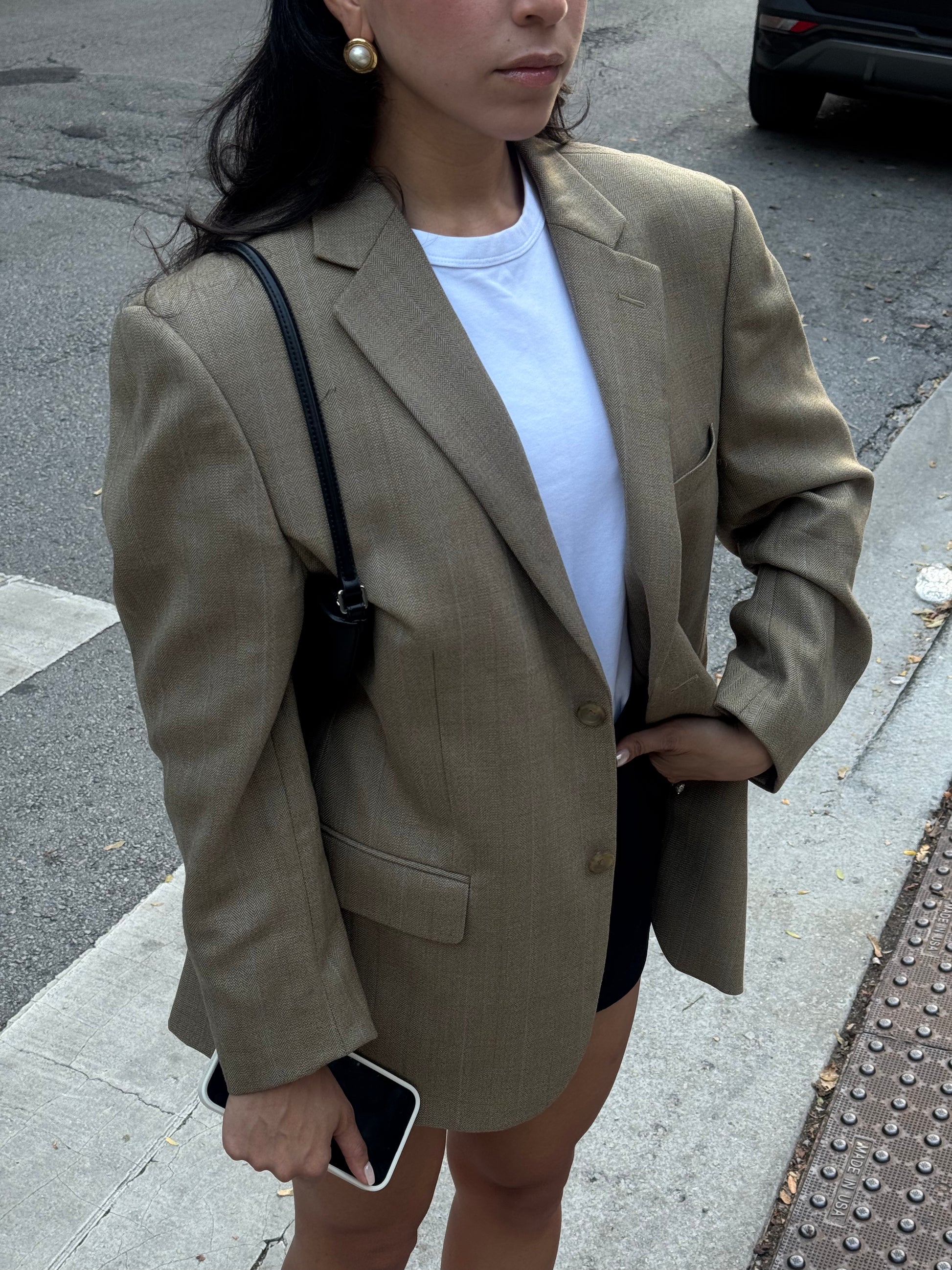 Fit note: All the blazers worn by Majo in photos are size L or XL, styled with an oversized fit. Majo is 5’8” (1.73 m) tall.