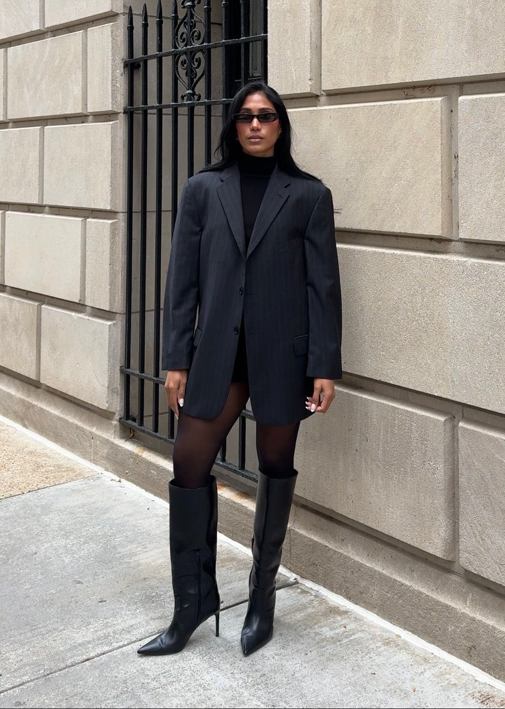All our blazers feature an oversized fit, so here’s what we recommend: