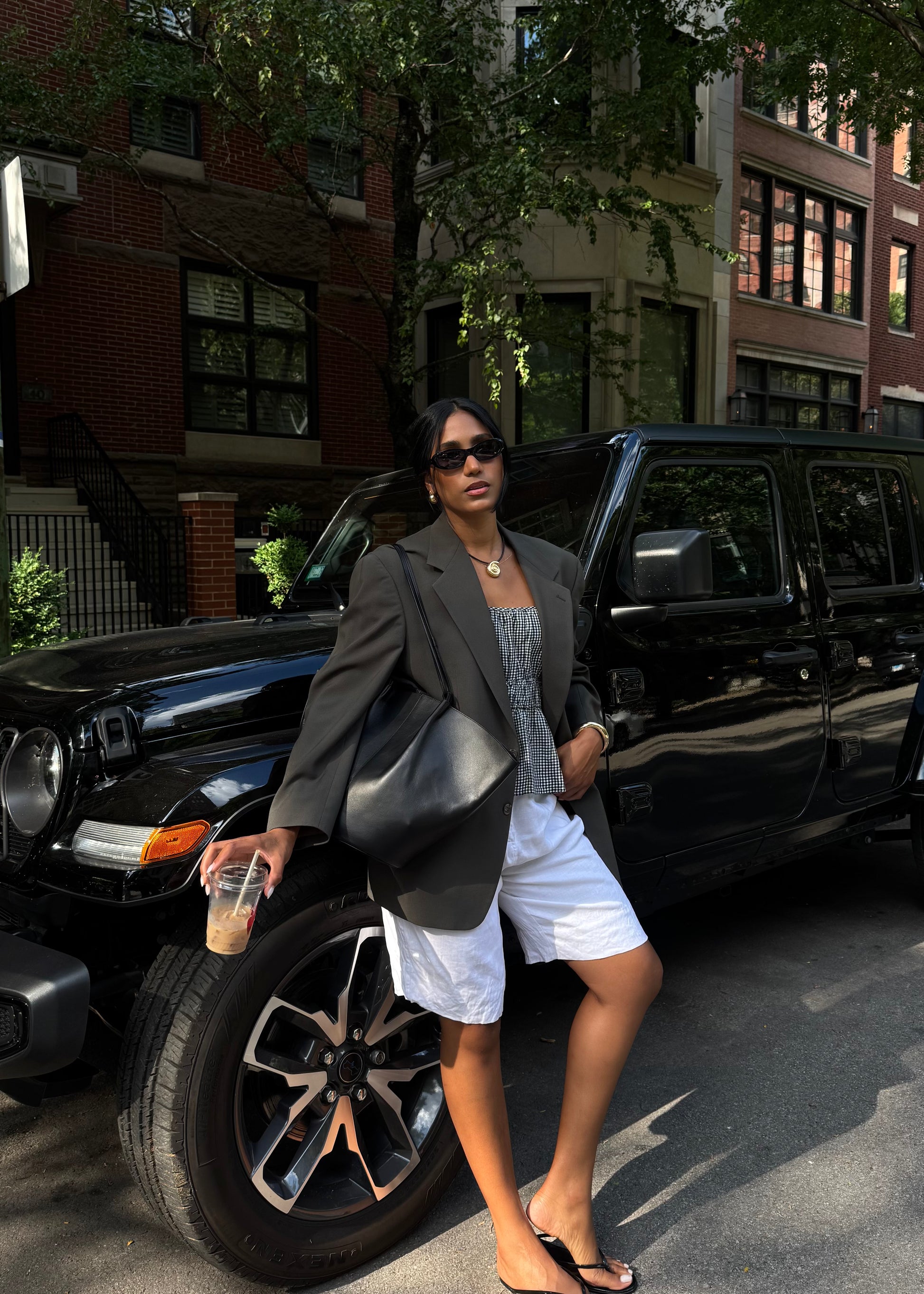 Fit note: All the blazers worn by Majo in photos are size L or XL, styled with an oversized fit. Majo is 5’8” (1.73 m) tall.